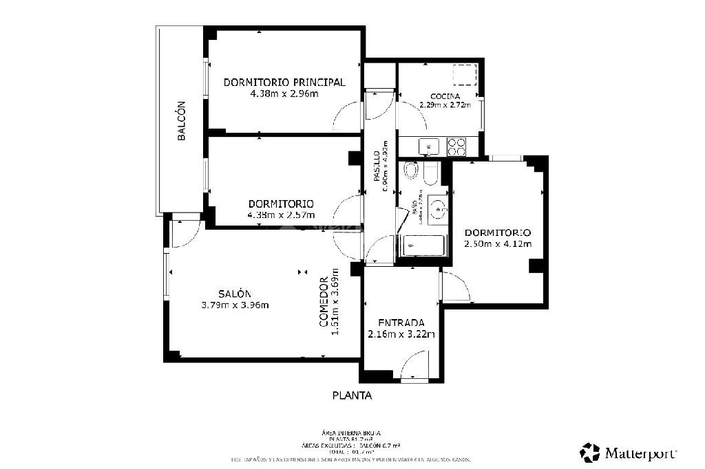 La vivienda cuenta con 94 metros cuadrados construidos, distribuidos en hall de entrada, cocina, salón-comedor con balcón, tres dormitorios y baño completo uno con plato de ducha.